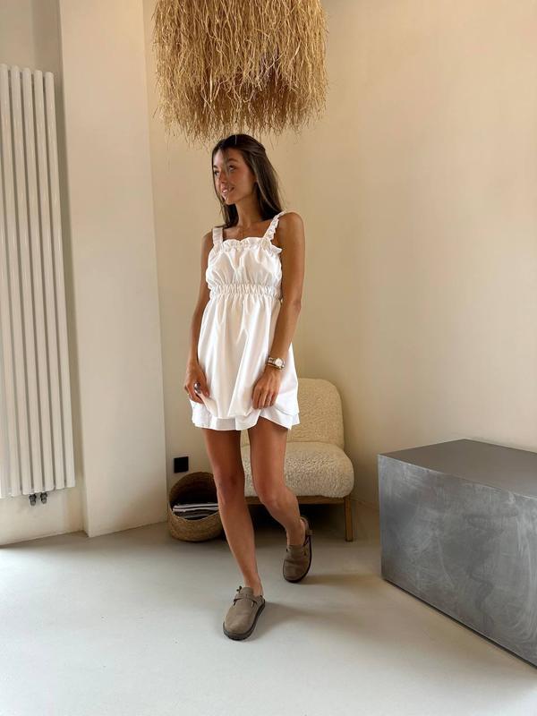 Новинка❤️ Сарафан ✅Модель 12 ✅Тканина: Софт ✅Розміри: 42-44; 46-48 ✅Кольори: Чорний, білий Повітряний силует, акцент на талії та ніжні рюші створюють образ, який хочеться носити щодня 🥰 Тканина подвійна не світиться ❤️