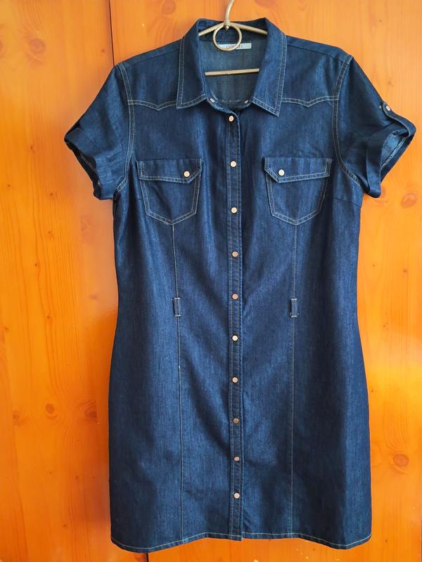 Джинсова сукня в ідеальномустані,застібається на кнопки.Розмір вказано приблизно,дивіться по замірам.Довжина 92см. Ширина в грудях 52см ширина в талії 47см Ширина в бедрах 55см.
