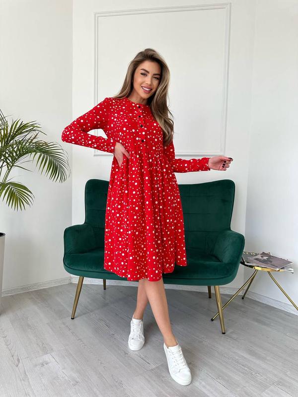 Сукня арт. ok. 695 Тканина: турецький Soft Колір: чорний, білий, червоний Розмір: S-M, L-XL Ґудзики функціональні. По бокам кишені. Довжина 102 см.