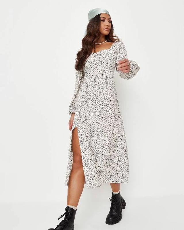 Летнее платье длиной миди в цветочный принт с разрезом спереди сбоку. Застегивается на скрытый замочек сзади. Размер UK 14 L Состояние новое с биркой