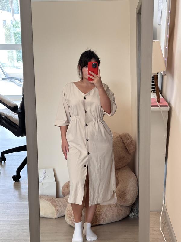 Сукня літня, дуже легенька, у мене плямка не відстіралась,можливо у вас получиться)) Розмір на с-м
