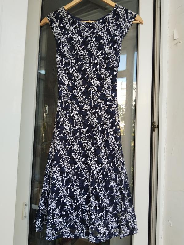 Жіноча сукня темно-синього кольору,сіточка ,але має підклад 🩵 Розмір вказано 8(36) 🩵 Довжина 91см 🩵 Півобхват грудей 40 см тягнеться до 47 см 🩵Пояс 35 см тягнеться до 42 см 🩵Бедра вільні 55 см ❣️❣️❣️ Маленький нюанс,але непомітний попереду світло рожева плямка ✅✅✅ Дивіться фото ❣️