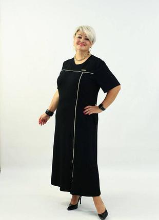 Сукня Розмір: 48-52, 54-58, 60-64 Тканина: турецька віскоза Колір: чорний Стильна сукня, виготовлена з турецької хб віскози, приємна до тіла тканина, не парить, ідеальний варіант на кожен день та для виходу. Зручна довжина максі. Стильний акцент- декоративний кант, який витягує сілуєт та робить фігуру стрункіше. Виміри: 48-52 Обхват грудей: 110 см Обхват стегон: 118 см Довжина виробу: 120 см 54-58 Обхват грудей: 116 см Обхват стегон: 128 см Довжина виробу: 122 см 60-64 Обхват грудей: 128 см Обхват стегон: 136 см Довжина виробу: 125 см
