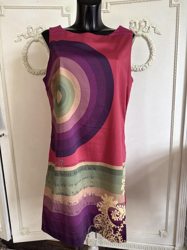 Стильна якісна сукня міді. Застібка-змійка по спинці. По складу:котон/елачтан. Розмір по бірці-46(европейський). Заміри:довжина-92 см, ПОГ-50 см, ПОТ-47 см, ПОБ-53см. Без підкладки. Стан ідеальний.
