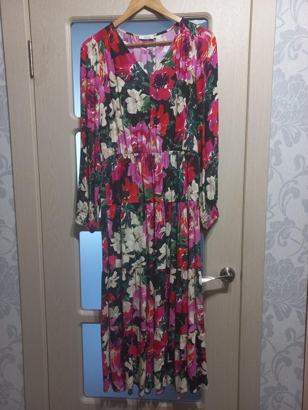 Сукня з віскози. НОГ - 49 см, НОТ - 36 см (резинка тягнеться до 44 см), довжина - 122 см, рукав - 62 см.