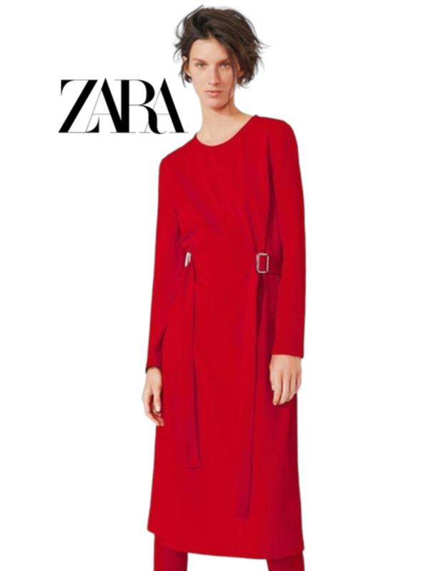 & Дуже ефектна червона сукня Zara, склад поліестр та 4% еластан Пояс можна носити як із переду так і як на першому фото & Стан ідеальний & Розмір М, заміри в нерозтягнутому стані : ПО плечі 42см ПО грудей 48см ПО талії максимум 51см, регулюється поясом ПО в районі бедер (умовно) 56см ПО низу 58см Довжина рукава 61см Довжина сукні 119см, від плеча до талії 40см