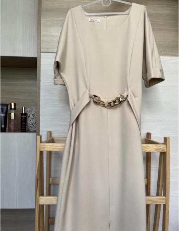 Жіноча бежева коктельна сукня міді по фігурі з розрізом m/l