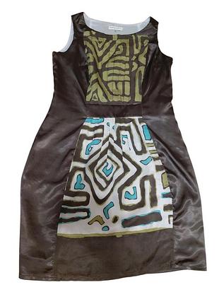 Платье испанского бренда с красивым составом 45% шелк. Платье сбоку а молнии имеет интересный рисунок, на тонкой подкладке, очень приятное к телу. Платье имеет приятный темно-оливковый цвет, безложений. Размер указан 42. Замеры : ПОГ 47+1см, ПОТ 43, ПОБ 52, длина по спинке 90,