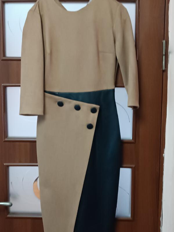 Плаття в ідеальному стані. Пошиття супер. Матеріал під замшу з екошкірою.Об.грудей 86 см. Талія 64 см. Бедра 88 см. Довжина 116 см. Рукав 39 чверть. Виглядає супер.