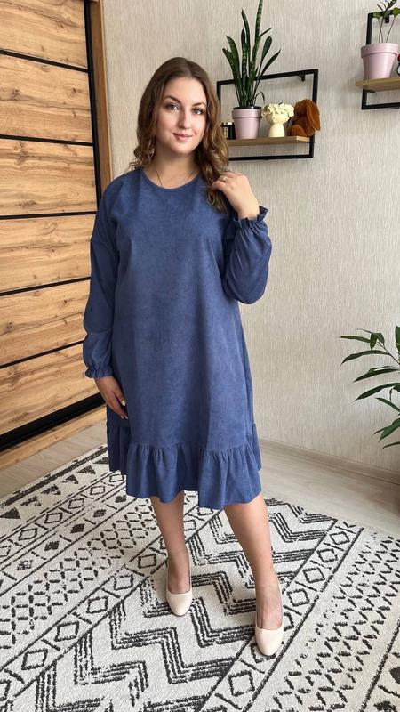 Новинка🔥 Сукня вільного фасону😍 Модель 077 Тканина: вельвет Кольори: мокко, шоколад, джинс, оливка Розміри: 48-50, 52-54, 56-58, 60-62 Довжина рукава від горловини: 70, 70, 71, 71см Довжина по спинці: 103, 103, 104, 104см Заміри по виробу: 48-50 ОГ- 116см; ОТ- 118см; ОС- 134см. 52-54 ОГ- 124см; ОТ- 128см; ОС- 140см. 56-58 ОГ- 130см; ОТ- 136см; ОС- 148см. 60-62 ОГ- 138см; ОТ- 142см; ОС- 150см. Сукня вільного фасону, тканина вельвет. Знизу невелика рюша, рукавчик приспущений. Гарно оброблена горловина, якісний пошив. Тканина приємна до тіла. Трендові осінні кольори🥰 Зручний фасон, підійде на будь-яку фігуру☺️