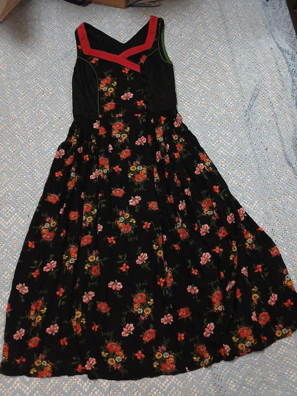 Сукня- сарафан жіночий, баварський, вінтажний,в квітковий принт. Виміри виробу: пог 43 см,пот 38 см,постегон: вільно,довжина виробу: 128 см.