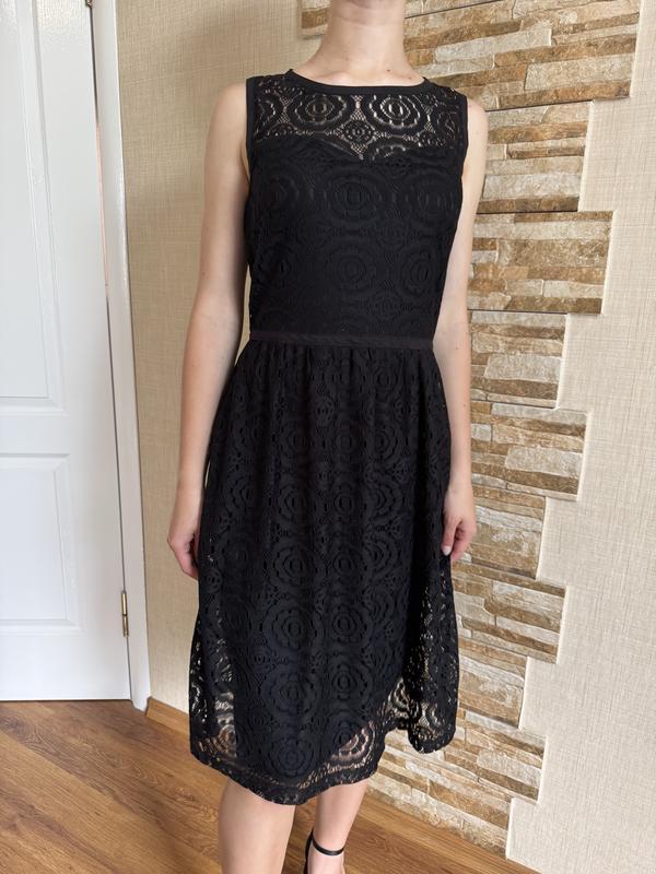 Кружевное черное платье на подкладке размер 8, длина 99 см, ПОГ 41 см, ПОТ 36 см, трикотажная, тянется