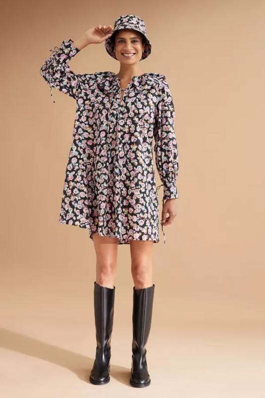 Неймовірна сукня з коміром та зав’язками. З щільного Котону  Довжина 92, рукав 64, пог 55