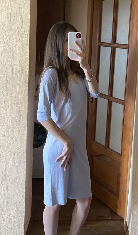 Базова міді сукня з v-вирізом ніжно блакитного кольору