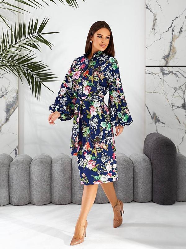 Красивое изящное платье в трех цветах длина миди длинный рукав ткань принтованая костюмка