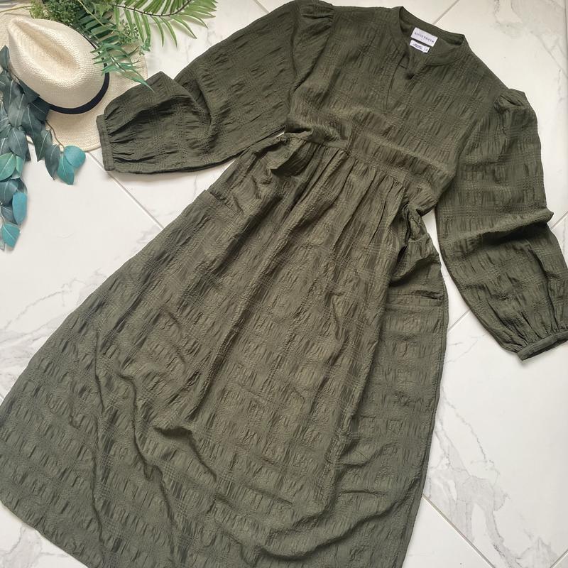 Сукня хакі міді стан ідеальний, поліестер, фактурна тканина, кишені р 12 л -довжина 128, рук 60 -нОг 50-51 -нОт 47 вільно -нОб вільно ФОТО НА ТІЛІ НЕМАЄ