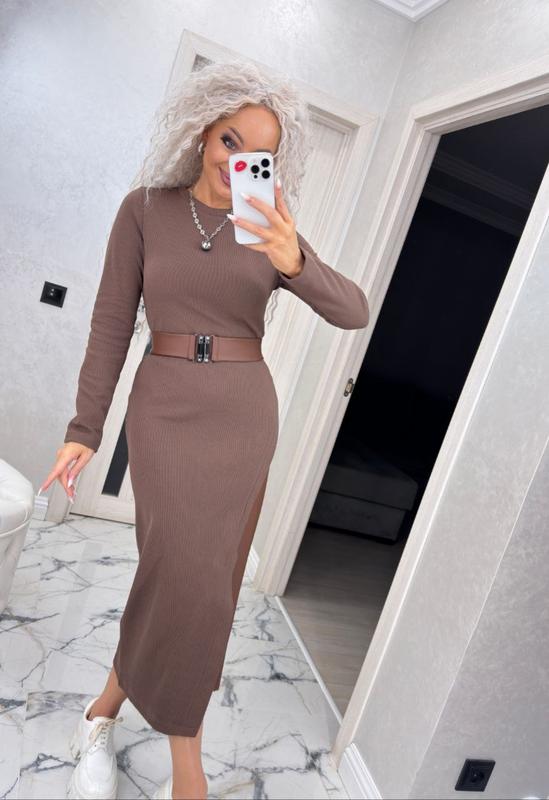 Сукня "Аристократка" В нашій сукні ти точно привернеш увагу всіх оточуючих..."світська левиця" - тепер це не мрія, а реальність. Сукня виконана в двох комбінаціях тканин, доповнена шикарним поясом! Пояс по спинці на резинці! Пояс в комплекті! Розміри: 42-44, 46-48, 50-52, 54-56 Тканина: рубчик коса на флісі + екошкіра на замшевій основі Кольори: шоколад, чорний Догляд: ручне прання до 30° Виробництво: Україна _________________________________ Заміри на останньому фото!