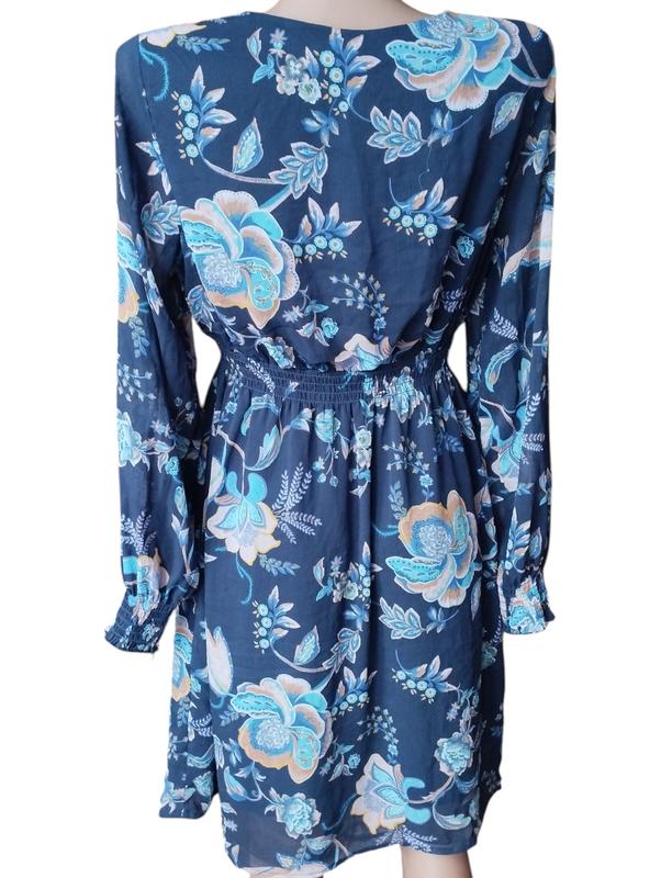 Сукня шифон із підкладкою. Є кілька зачіпок і дірочка маленька біля горловини. Заміри на фото.