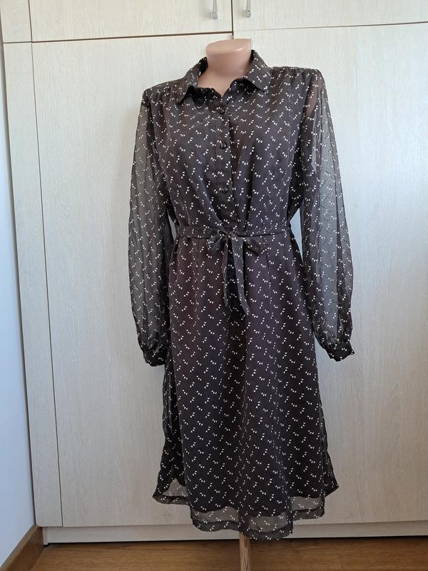 Вінтажна сукня темнокоричневого кольору..Має підкладку.Заміри зроблені по лицьовій стороні.. Довжина 104см Довжина рукава 61см Ширина під пахвами 51см Півоб'єм талії 47см По бедер 54см Ширина по низу 60см