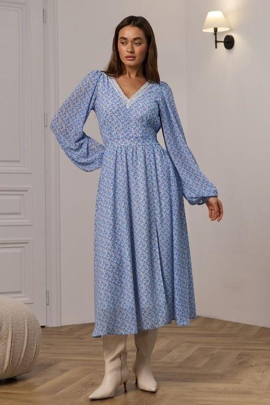 Ніжно блакитна сукня українського виробника.Довжина 120см,плечі 34см,пот 32см.