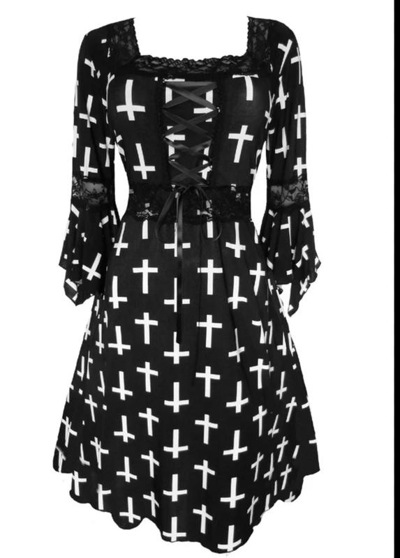 Чорно-біла сукня у стилі ренесанс з принтом у вигляді хрестів сша