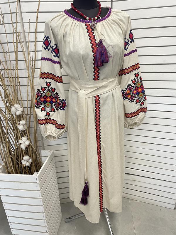 ПОГ 57 Довжина 118 Рукав від горловини 67 Сукня в кольорі «сірий льон», пояс в комплекті