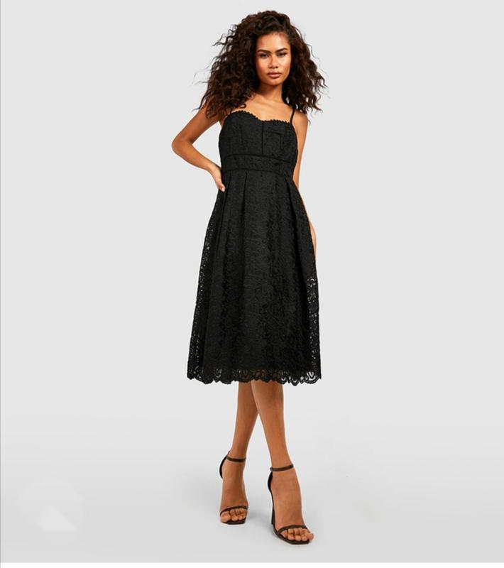 Мереживна сукня міді, чорна сукня міді, на бретелях, розмір 44