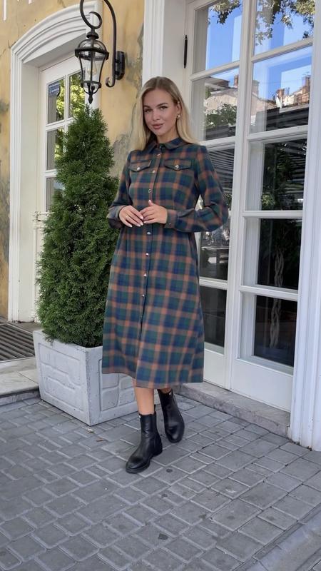 Стильна сукня у клітинку від українського бренду. Сукня-сорочка. Нова, з біркою. Застібується на кнопки. Можна носити з ґудзиком. Довжина 105 см. Розмір 44. Підійде на обєм грудей 88-92. Низ вільний. Бавовна 100% Колір на фото не передається. У житті більш насичені кольори, яскравіший синій.