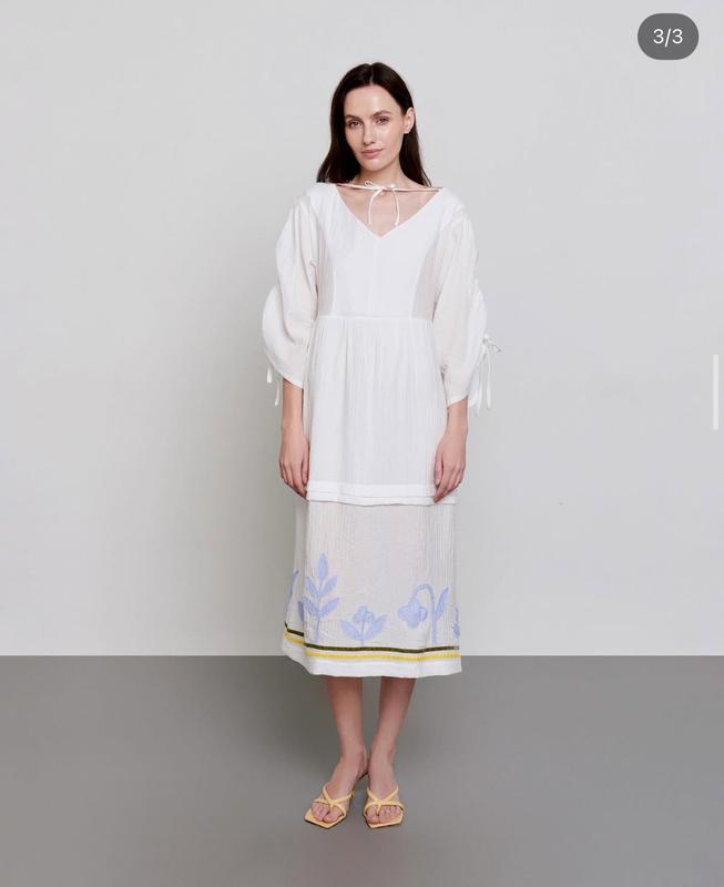 Біла міді-сукня з аплікацією від Anna Yakovenko. З легкої тканини. Розмір М. Матеріал: 40% віскоза, 40% поліестер, 20% котон
