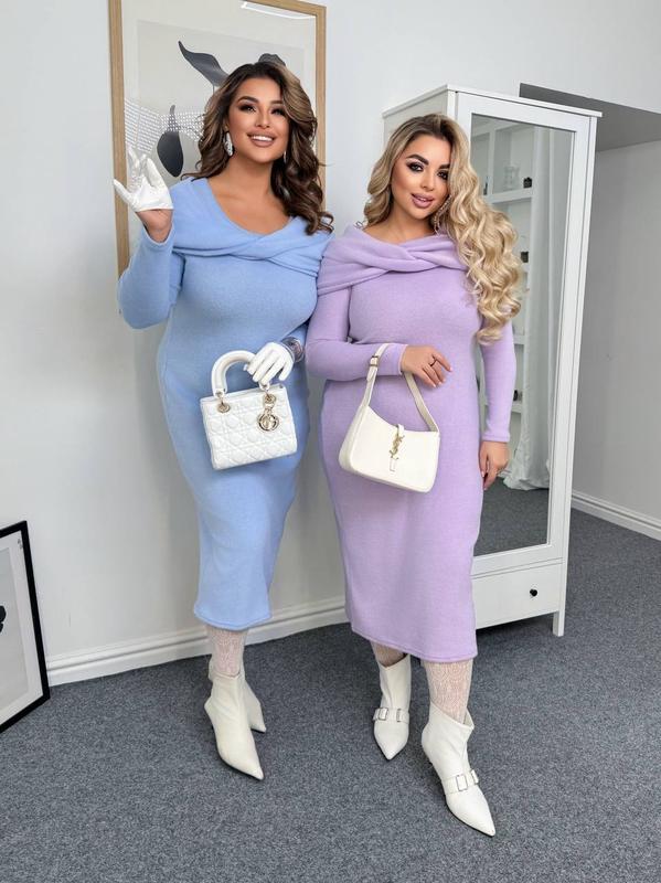 ✅Хит продаж🇺🇦 📣В наличии Сукня ▪Модель: 0320 ▪Размеры: 50-52, 54-56, 58-60, 62-64 ▪Тканина: Ангора ▪Цвета: морская волна, розовый, голубой, серый, лаванда Модель имеет облегающий силуэт длиной миди, подчеркивая фигуру. Верх украшен оригинальным воротником-хомутом, который мягко драпируется и придает образу женственность и уют. Рукава длинные, без манжет. Элегантный, но комфортный повседневный образ в стиле casual chic.