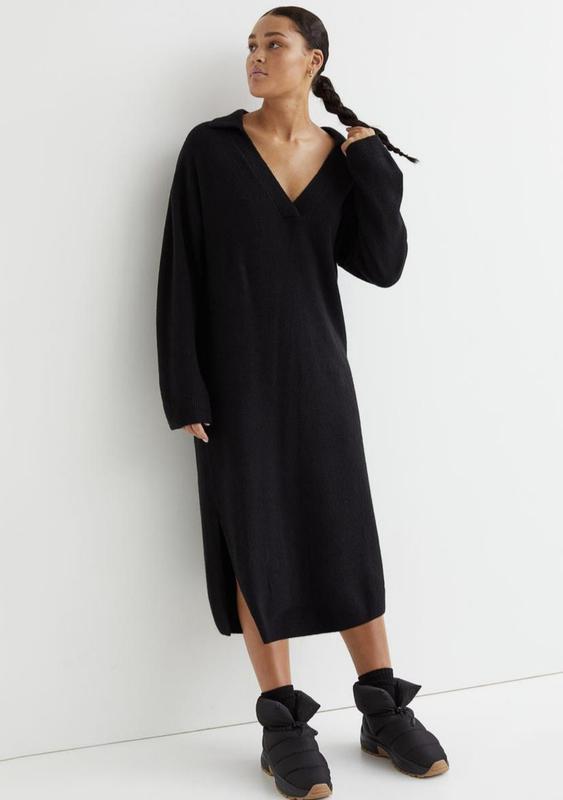 🌿чорне в'язане плаття H&M крою оверсайз Розмір:XS, підійде для S/M Заміри:ПОГ 56 см, довжина 113 см, рукав від горловини 76 см