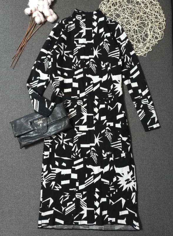 Модное длинное платье от Shein, прямого свободного кроя с воротником стойкой. Универсальный женский наряд в холодный период, станет идеальной основой как повседневного, так и особого события. Оригинальный трендовый принт. Отлично сочетается как со спортивной обувью и грубыми ботинками, так и с элегантными туфлями и высокими сапогами на каблуке. Цвет: черно-белый. Состав: 100% акрил. Размер на наборе M, подойдет и на S. ✅️ Замеры: Длина - 109 см. ПОГ - 47 см. ПОТ - 44/45, рукав - 59 см от плеча. Состояние новой вещи. Одетая пару раз. Цена на официальном сайте 1600 грн. Смотрите другие Мои объявления! Приятные цены!👉🛍