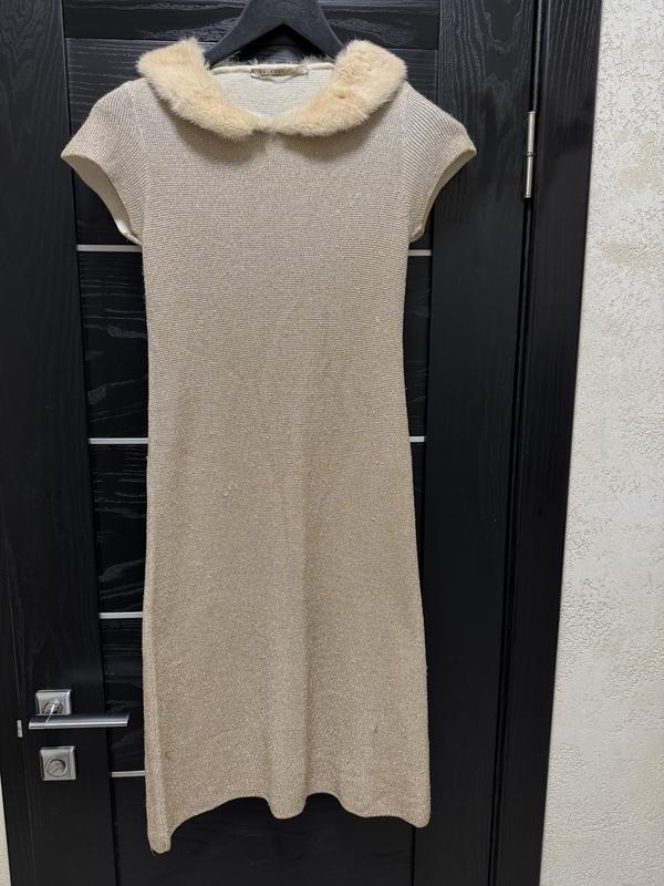 Вечірня облягаюча сукня з норковим коміром Довжина- 100 ПОГ-34 ПОБ-39 Еластична, добре тягнеться Нюанси- на останніх фото помічено, є декілька поверхневих ( не наскрізь) зачіпів, майже непомітно. Можна щось вишити в тому місці, або причепити брошку.