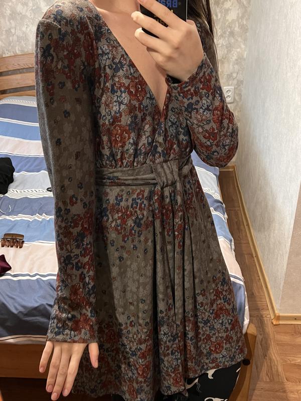 Сукня жіноча до коліна з декольте в орнамент Збоку є прихована змійка З поясом, що затягується під вашу фігуру