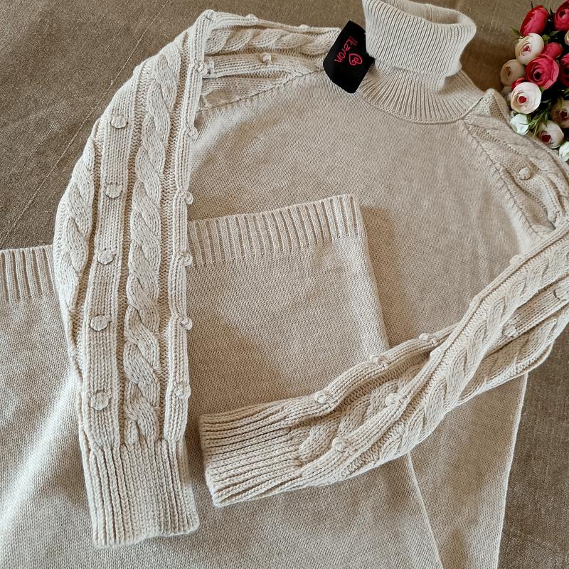 ❤ СТИЛЬНАЯ МИДЫ СУКНЯ ❤ Оригинальное платье-гольф отличного качества. Очень приятный к телу плотный вязаный трикотаж акрил 100%. Фасон - прямой, воротник с отворотом, Очень приятная модель. Рукав-реглан, длинный. Платье очень удобное. Материал чуточку тянется, идеально садится по фигуре. Турция. цвет: мягкий светлый беж Размер универсальный Хс/С(42/44) ✅ Размер - ХS/S Замеры без натяжения: Длина - 114см ПОГ- до 44см Длина рукава с плечом - 72 см Стоимость: 450грн