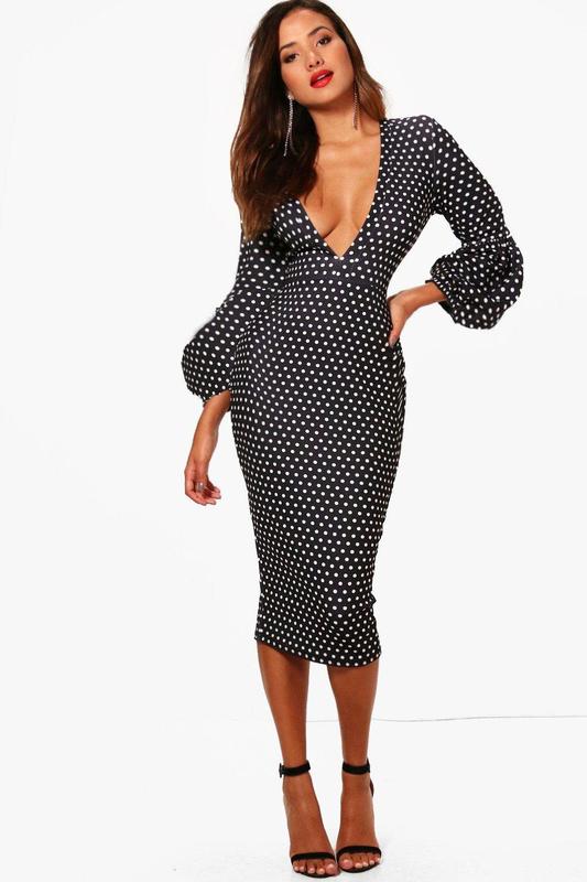 Розпродаж сукня boohoo міді горошок з вирізом