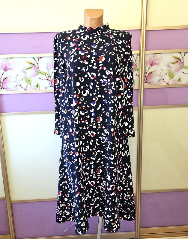 1+1=3 стильное темно-синее платье в принт под горло marks & spencer, размер 46 - 48