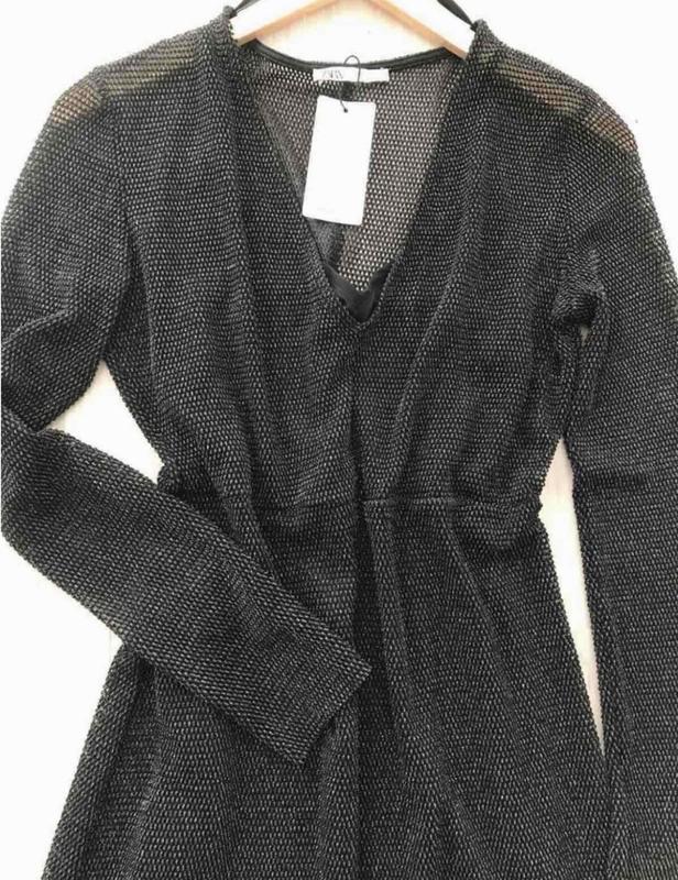 Вечірня, розкішна сукня міді від іспанського бренду Zara. Розмір: S. Колір: чорний із люрексом. Тканина тягнеться. Ціна — 2250 грн. Додаткові заміри та фото за запитом! Дуже якісна! Має шикарний та дорогий вигляд!