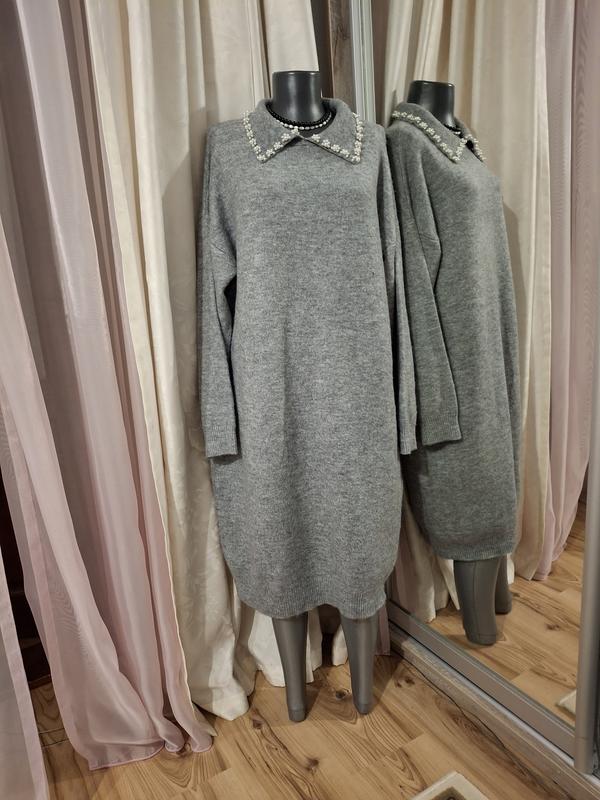 Тепле з перлами на комірі плаття 👗 великого розміру