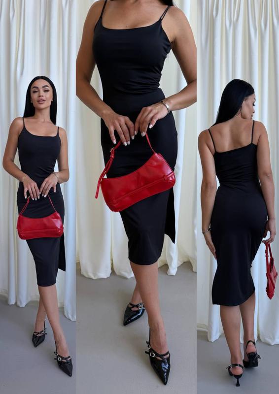 # 611 ❤знову в наявності ✅ ▪️Колір: Чорний та червоний ▪️Тканина: Щільний мікродайвінг ▪Розмір: 42-46 (єдиний) ▪️💥Ціна 630 грн 🔥 заміри на останньому фото ➡️ Витончена сукня на тонких брителях👠 Must have в Вашому гардеробі 👍Тканина щільний мікродайвінг , не світиться та добре тягнеться📸Ідеально підкреслює фігуру ❤️
