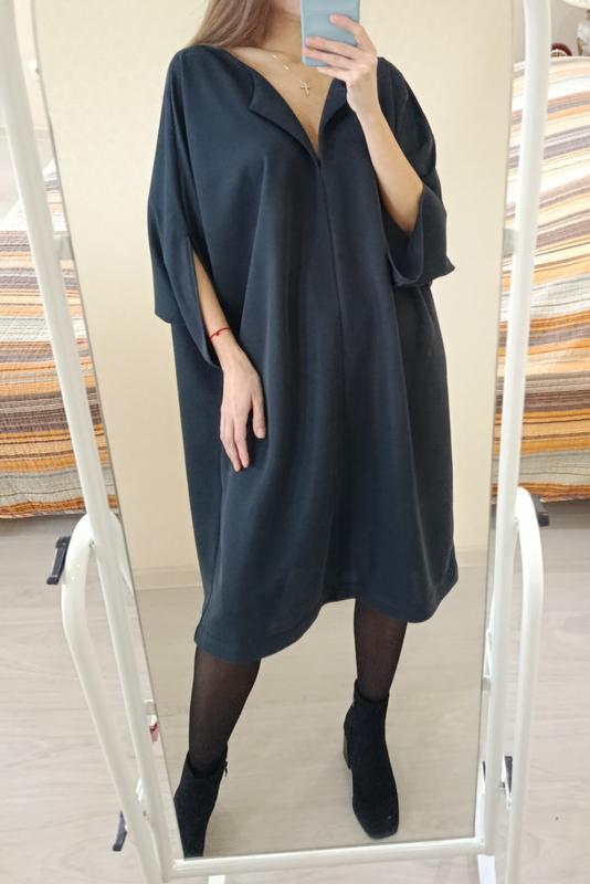 Продаж тільки при повній оплаті на карту!! Сукня вільного крою від ARKET. Стан відмінний. Тканина щільна, тягнеться. Широкий крій. Рукав кімоно. Темно-сіра. Розмір 40. 59% модал, 41% поліестер Довжина 104см Пог вільно Поб 70см
