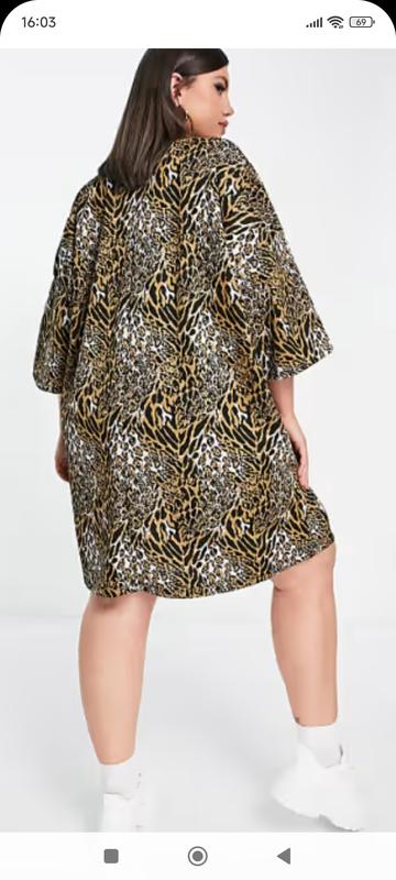 Нова бомбезна тепленька сукня - туника оверсайз в фактурний леопардовий принт бренду ASOS DESIGN Великобританія. Європейський сток, нова, без паперових етикеток. Виглядає супер. Сілуєт рівний, плечі спущені, довга, добре прикриває стегна. Дуже гарно буде з лосінами, брючками. Можна і на будні і на свято. Тканина гарної якості, тепленька, зовсім не мнеться, на прохолодну погоду. Кольори гарні, спокійні, приглушені, елегантні, гарнюній достойний леопардик, все гарно і в міру стримано. 96% поліестер, 4 % еластан. Рукав спущений,3/4, рукав широкий. По бірці розмір UK 12 EU 40 На ці розміри ну дужеее велика. По замірам на наші розміри 56-58. Обов'язково звірте заміри. Заміри напівобхват Плечі спущені НОГ 75 см НОТ 75 см НОС 75 см Довжина по спинці 84 см Рукав від ворота 55 см