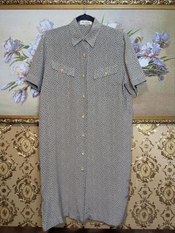 Вінтажне плаття 👗 Виробництво: Італія. Матеріал: 100% натуральний шовк 🤌 "Золоті" гудзики. Розмір вказаний 42. Виміри: плечі 41, рукав 27, ПОГ 54, ПОТ 50, ПОС 54, довжина 103. Є непомітна пляма, за рахунок принту не видно, роздивилися лише коли заміряла 😉 Покупкою залишитеся дуже задоволені 💯