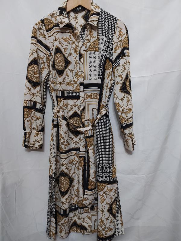 Платье женское f&f 12 миди с длинным рукавом, на пуговицах, под поясок, с разрезами