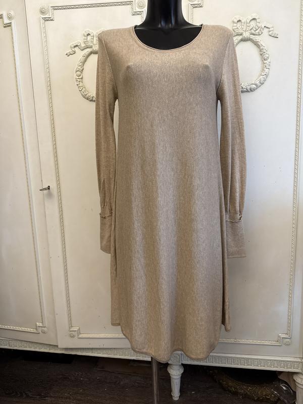 Колір бежевий. Сукня-трапеція з довгим рукавом. Склад:котон/кашемір(90/10),Розмір по бірці-L. Заміри: довжина-100 см, ПОГ-44 см, ПОБ-50 см, Рукав-67 см. Стан ідеальний. Рукав з високим манжетом. Без карманів.