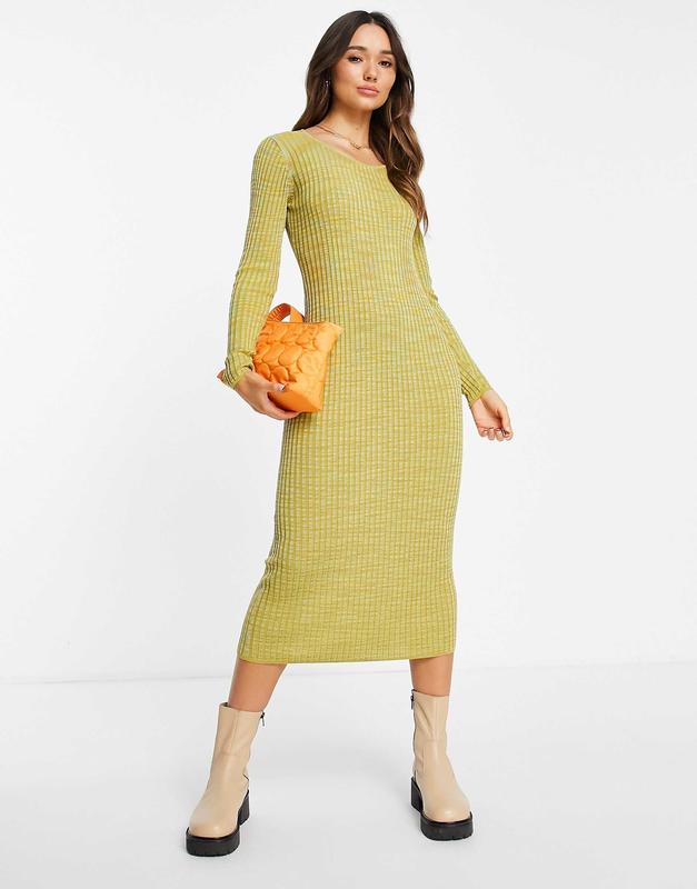 ASOS DESIGN - Ребриста сукня міді з відкритою спиною та ефектом секційного фарбування Довжина - 110 см Сильна розтяжність від розміру S до М-L Матеріал не просвічує.