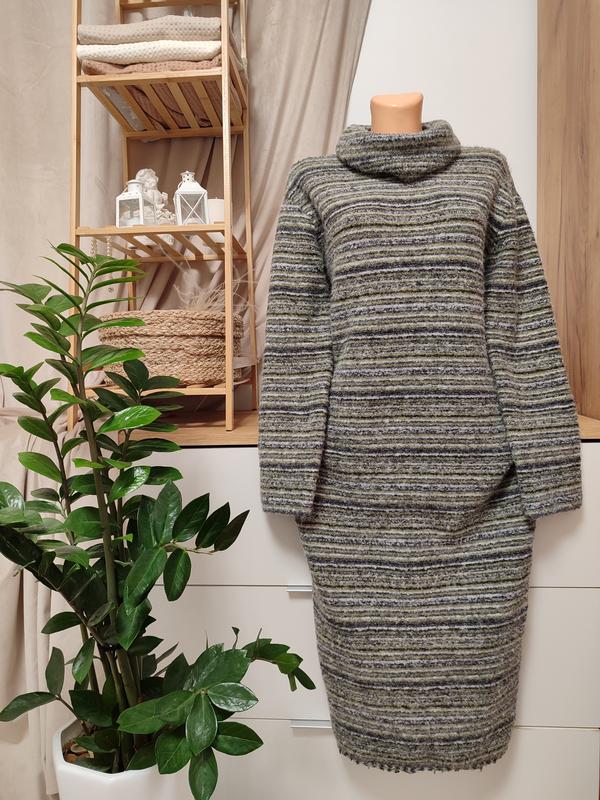 Монохромні полоси витягують силует, спокійний сірий робить її універсальною для щоденних образів. Дуже тепла, просто кожух! Довжина 123, ПОГ 50, підійде на М і Л. Прошу підписуватися, є багато гарних речей і часте оновлення товару!