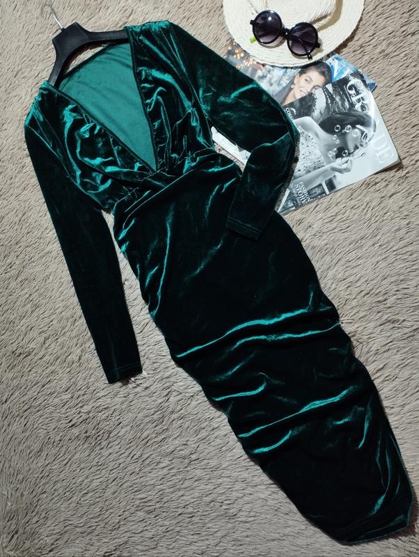 В идеальном состоянии. Шикарное бархатное платье миди по фигуре. Ткань средней плотности, тянется. Размер универсальный M-L, но смотрите по замерам Замеры (полуобхват): Грудь 44 (тянется до 52) Талия 38 (тянется до 48) Рукав 57 Бедра 47(тянется до 56) Длина от плеча 107