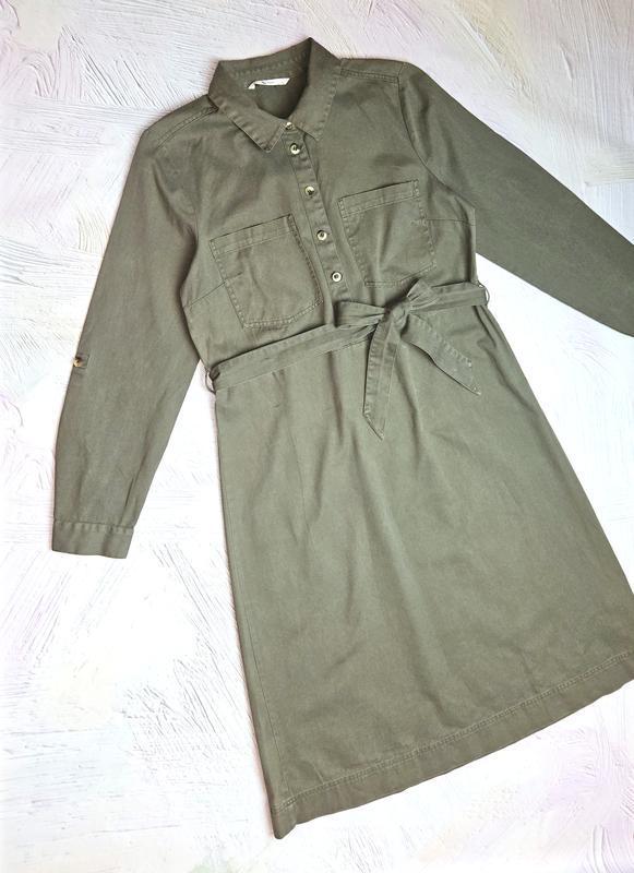 💝1+1=3 шикарное коттоновое джинсовое платье-миди хаки tu, размер 46-48