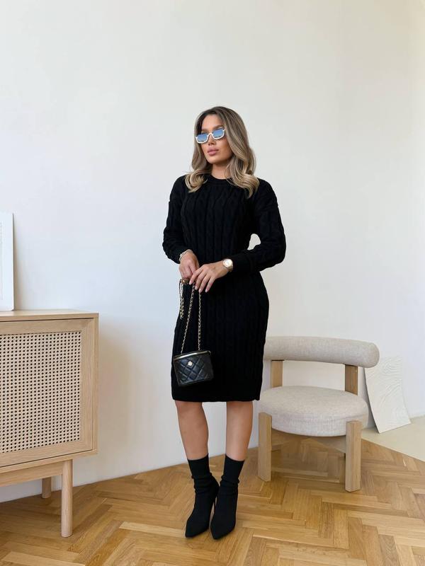 Супер стильна і комфортна в'язана міді-сукня код 830